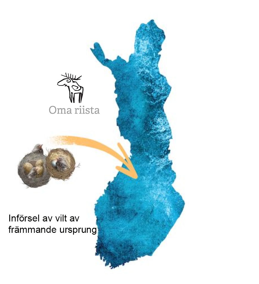 Enligt 42 § i jaktlagen får vilt av främmande ursprung och viltbestånd av främmande ursprung inte importeras från länder utanför Europeiska unionen eller från en medlemsstat i Europeiska unionen eller sättas ut i frihet utan tillstånd av Finlands viltcentral. Tillstånd ska vägras, om åtgärden kan medföra skada på naturen eller de vilda djuren. Tillståndet kan förenas med villkor om hur importen och införseln från en annan medlemsstat och utsättandet i frihet ska ske.