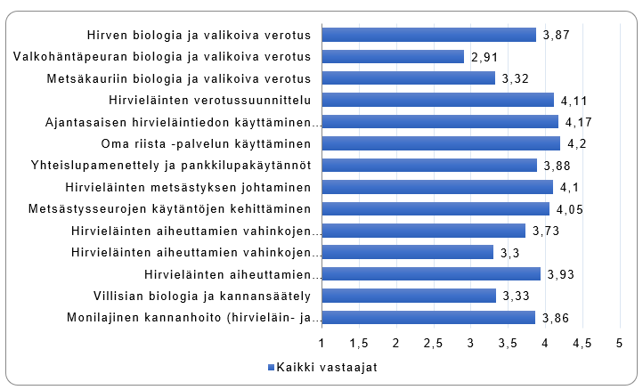Med hjälp av en elektronisk enkät under våren undersökte Finlands viltcentral jägarnas intresse för olika utbildningsämnen. På enkäten svarade allt som allt 1 500 personer.